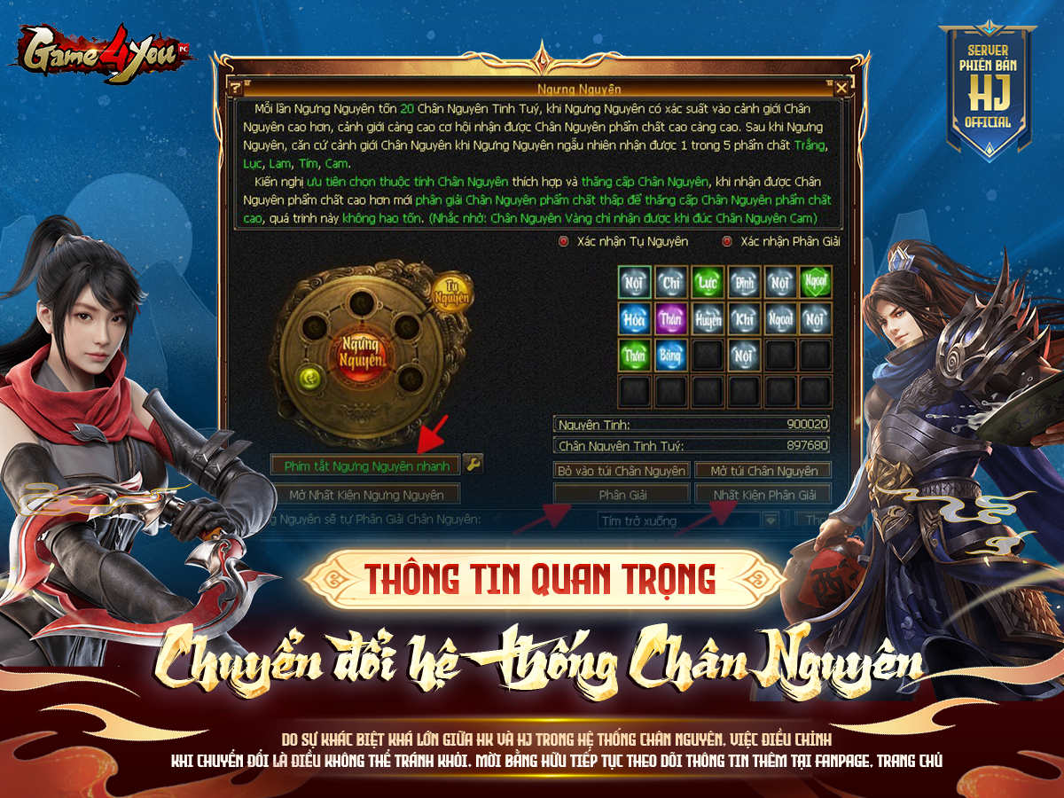 - Chuyển đổi hệ thống Chân Nguyên từ Tâm Pháp HK sang Tâm Pháp HJ