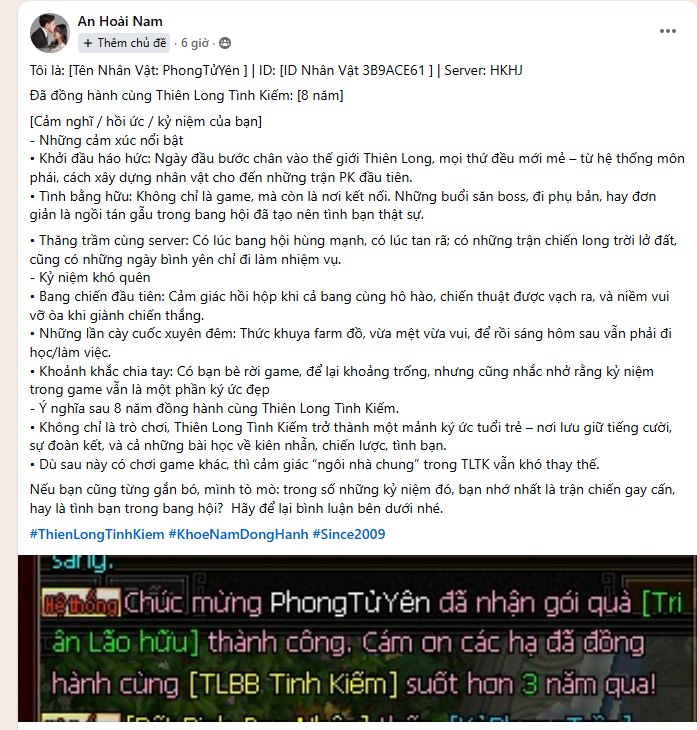 Thiên Long Tình Kiếm không chỉ là một máy chủ - mà là cả một chặng đường gắn liền với thanh xuân của nhiều trang nam tử, nữ nhi.